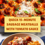 Keywords: sausage meatballs, quick dinner, Italian meatballs, tomato sauce, weeknight meal, pasta sauce, easy meatballs