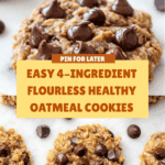 These 4 Ingredient Flourless Healthy Oatmeal Cookies are a simple, nutritious treat perfect for a quick snack. Made with ripe bananas, natural peanut butter, rolled oats, and chocolate chips or dried fruit, they’re gluten-free and require no flour. Baked until set and lightly crisp, these cookies offer a wholesome, naturally sweet crunch that satisfies your cookie cravings without any guilt.