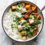 Keywords: green curry, tofu curry, coconut curry, Thai curry, sweet potato curry, easy curry recipe, one-pot curry