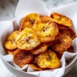 Delight in these crispy and sweet Air Fryer Cinnamon Banana Chips, a healthy and easy-to-make snack. Thin banana slices are lightly coated in coconut oil, sprinkled with cinnamon sugar, and air fried to perfection for a crunchy treat that’s perfect anytime.