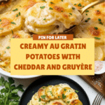 Au Gratin Potatoes are a rich and comforting classic side dish featuring tender slices of potato baked in a creamy, cheesy sauce. With a crispy golden top and layers of soft potatoes underneath, this recipe is perfect for holidays or cozy family dinners.