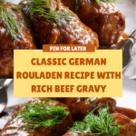 Authentic German Rouladen is a classic comfort dish featuring tender beef rolled with mustard, bacon, pickles, and onions. Simmered in a rich gravy, this hearty meal is perfect for special occasions or cozy family dinners.