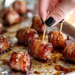 Bacon-Wrapped Little Smokies are a classic, crowd-pleasing appetizer featuring small sausages wrapped in crispy bacon and coated with a sweet and spicy brown sugar glaze. Perfectly baked until caramelized and slightly crisp, these bite-sized treats balance savory, smoky, and sweet flavors, making them ideal for parties or game day snacks.