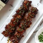 These Balsamic Glazed Ribeye Skewers feature tender, thinly sliced ribeye steak marinated in a flavorful blend of cabernet sauvignon, balsamic vinegar, soy sauce, garlic, and rosemary, then seared to golden perfection. Finished with a rich, reduced glaze and fresh chives, they make a perfect appetizer or main dish that’s both elegant and packed with savory depth.