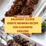 Keywords: balsamic glazed ribeye skewers, steak skewers, balsamic vinegar marinade, seared ribeye, easy appetizer, beef skewers, savory glaze
