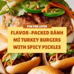 These Bánh Mì Turkey Burgers are a delicious fusion of American and Vietnamese flavors, featuring juicy turkey patties seasoned with aromatic ingredients and topped with tangy pickled vegetables and spicy mayo. Perfect for a quick yet flavorful meal, these burgers combine the fresh crunch of pickles with the heat of Sriracha and the richness of brioche buns.