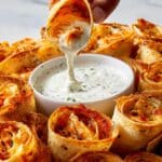- Serve: Pour ranch dressing into a 3-inch ramekin and set it in the center of the quesadilla ring. Serve immediately while warm, allowing guests to dip their cheesy, spicy quesadilla cones into the cool ranch.