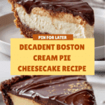 Boston Cream Pie Cheesecake is a decadent dessert that combines creamy cheesecake with rich chocolate layers inspired by the classic Boston Cream Pie. This indulgent treat features a graham cracker crust, a luscious cream cheese filling, and a glossy chocolate ganache topping.