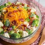 Keywords: Broccoli Cauliflower Salad, Bacon Salad, Raw Vegetable Salad, Summer Salad, Easy Side Dish