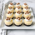 - Serve and Garnish: Before serving, optionally top each mini cheesecake with sweetened whipped cream and your choice of garnishes such as toffee bits, nuts, or sprinkles. Keep refrigerated until ready to enjoy.