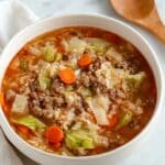 A hearty and comforting Cabbage Roll Soup that captures all the flavors of traditional cabbage rolls in a warm, easy-to-make soup. Ground beef, tender cabbage, carrots, and rice simmered in a savory tomato and beef broth seasoned with Italian herbs and a touch of brown sugar, delivering a satisfying meal perfect for chilly days.