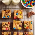 - Press the candy gently on top before baking to help them stick to the blondies and prevent excessive melting.
