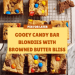 Keywords: Candy Bar Blondies, Halloween Blondies, Browned Butter Blondies, Chocolate Candy Blondies, Easy Blondie Recipe, Fall Dessert, Holiday Treat
