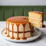 A delightful caramel layer cake featuring moist cake layers infused with smooth caramel syrup, paired with a rich and nutty brown butter frosting. This cake balances deep caramel flavors with a velvety texture, perfect for special occasions or indulgent treats.