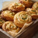 Delicious Cheesy Garlic Cruffins made from flaky crescent roll dough layered with garlic butter, chives, and mild cheddar cheese. These pull-apart muffin-shaped pastries are baked until golden and brushed with a savory garlic butter glaze, perfect for a savory breakfast or snack.