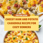 Keywords: cheesy ham casserole, potato casserole, baked ham and potatoes, comfort food, casserole recipe