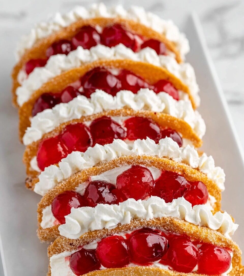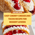 Cherry Cheesecake Tacos offer a fun and delicious twist on traditional desserts. This recipe combines creamy cheesecake filling with sweet cherry topping inside a crispy cinnamon-sugar taco shell—perfect for parties or a special treat.