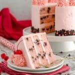 Keywords: cherry chocolate chip cake, layered cake, chocolate chip cake, cherry cake, buttercream frosting, birthday cake, celebration cake