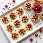 - Top Cookies: Lightly press a few reserved chocolate chips and cherry pieces onto the top of each dough ball to create an attractive finish.