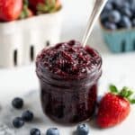 A simple and healthy Chia Berry Sauce made with frozen fruit and chia seeds. This versatile sauce can be used as a jam, topping, or spread, naturally thickened by chia seeds without any added pectin or gelatin.