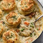 Keywords: Chicken Pot Pie, biscuits, comfort food, creamy chicken pie, easy dinner, homemade biscuits