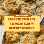 This comforting Chicken Pot Pie with Biscuits features tender shredded chicken simmered in a flavorful creamy vegetable gravy, topped with fluffy homemade or refrigerated biscuits baked to golden perfection. A cozy, classic dish perfect for a hearty dinner.
