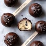 - Assemble the Truffles: Remove a few dough balls from the freezer at a time. Insert a half popsicle stick into each ball. Dip the truffle into the melted candy coating, allowing any excess to drip back into the bowl. Optionally, add small sprinkles on top while the coating is still wet.