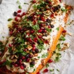 - Add Holiday Tapenade and Garnishes: Pile the holiday tapenade over the sauce, scatter pomegranate seeds and the remaining chopped parsley on top, then drizzle with fresh lemon juice.