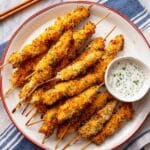 Store leftover skewers in an airtight container in the refrigerator for up to 3 days. To reheat, place them on a wire rack in a preheated 350°F oven until warmed through, ensuring the coating stays crispy.