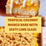 These Coconut Mango Bars with Lime Glaze are a tropical treat combining a buttery oat and coconut base with a sweet mango filling, all topped with a tangy lime icing. Perfectly balanced with a soft, crumbly texture and a refreshing citrus glaze, they make a delightful dessert or snack that’s easy to bake and sure to impress.
