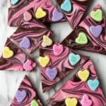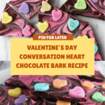 Keywords: chocolate bark, conversation hearts, candy melts dessert, no-bake treat, Valentine’s Day candy
