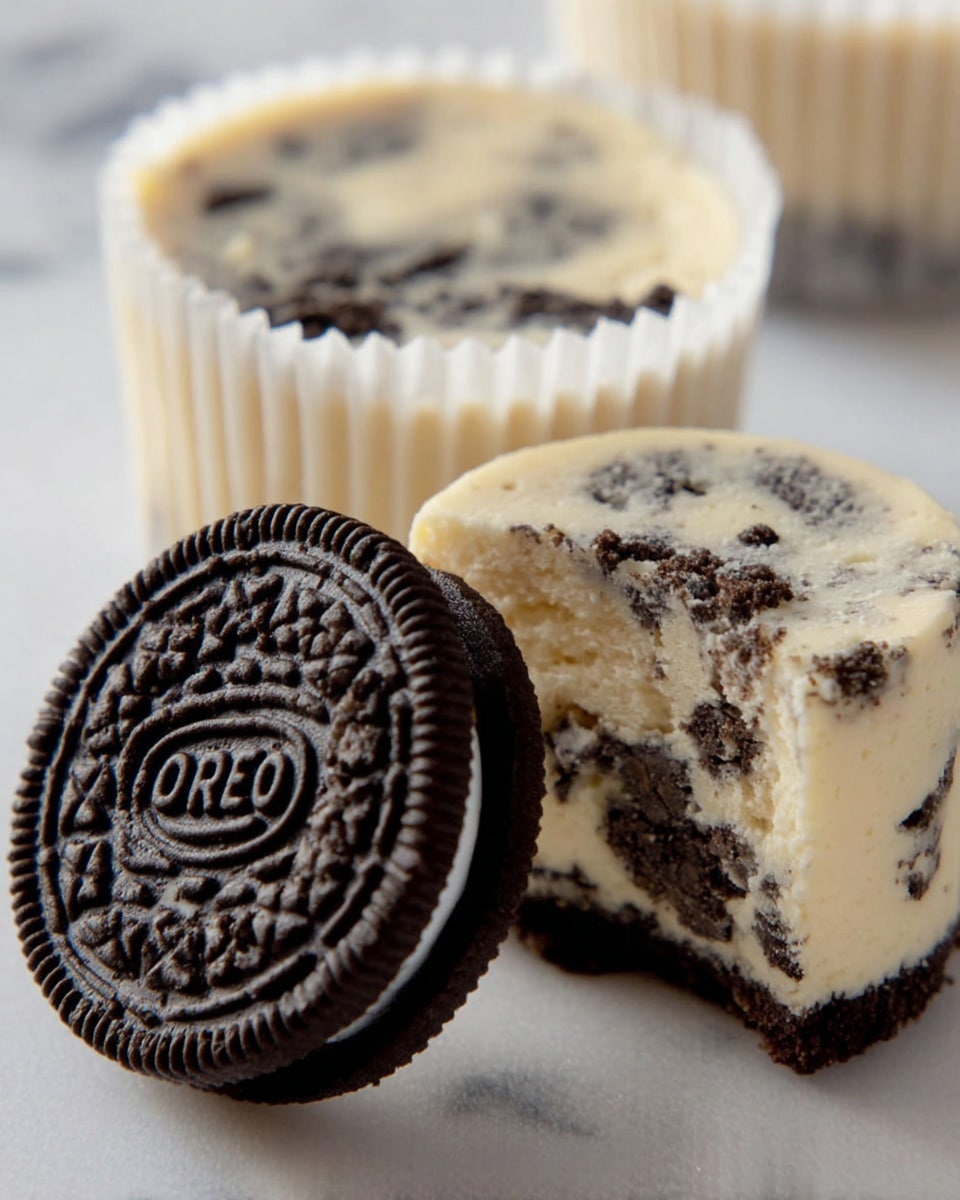 - Preheat and Prepare Tins: Preheat your oven to 275°F (135°C). Line two standard muffin tins with 15 paper liners. Place one whole Oreo cookie at the bottom of each lined muffin cup to form the crust base.