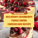 Keywords: cranberry cheesecake, fudge swirl cheesecake, holiday dessert, creamy cheesecake, chocolate cheesecake, water bath cheesecake