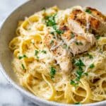 A classic Chicken Alfredo Pasta recipe featuring tender pan-seared chicken breasts served over fettuccine tossed in a rich and creamy homemade Alfredo sauce with Parmesan and a hint of nutmeg.