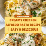 Chicken Alfredo pasta is a creamy, comforting dish that combines tender chicken breast with rich Parmesan sauce and perfectly cooked fettuccine. It’s an easy yet indulgent meal that feels special enough for guests but simple enough for a weeknight dinner.