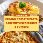 This Creamy Tomato Pasta Bake is a comforting and flavorful dish featuring tender pasta shells combined with a rich tomato and cream sauce, sautéed vegetables, and optionally shredded chicken. Topped with gooey melted cheese and baked to golden perfection, it’s perfect for a hearty family meal.