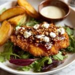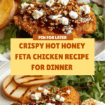 This Crispy Hot Honey Feta Chicken features juicy, perfectly seared chicken breasts topped with tangy feta cheese and a drizzle of sweet and spicy hot honey. Baked to perfection, this dish balances bold flavors and crispy textures, making it an easy and delicious weeknight dinner option.