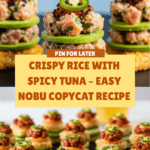 Crispy rice with spicy tuna is a delicious and elegant appetizer inspired by Nobu’s famous dish. Crispy rice cakes topped with creamy, spicy tuna provide a perfect balance of textures and flavors that will impress your guests or satisfy your sushi cravings at home.