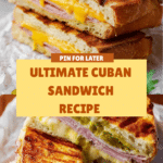 A Cuban Sandwich recipe featuring tender roasted mojo pork, Swiss cheese, honey ham, and pickles layered in Cuban bread spread with a zesty mayo-mustard sauce, then grilled to crispy, melty perfection.