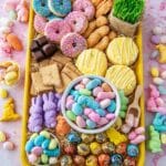 Create a festive and colorful Easter Charcuterie Board that’s perfect for celebrating spring and sharing sweet treats. This delightful assortment combines cookies, candies, and chocolates arranged on a bed of green coconut “grass” for a whimsical presentation that kids and adults will love.