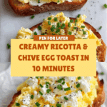 This easy 6-ingredient egg and ricotta toast is a creamy, satisfying breakfast that comes together in minutes. Soft scrambled eggs mixed with fluffy ricotta on toasted sourdough create a deliciously comforting start to your day.
