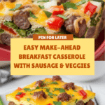 This easy make-ahead breakfast casserole is perfect for busy mornings or weekend brunches. Packed with savory sausage, fresh vegetables, and melty cheddar, it can be prepared the night before and baked when you’re ready to eat.