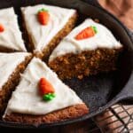 - Frost the Cake: Spread the cream cheese frosting evenly over the cooled carrot cake using an offset spatula. Slice into wedges and serve. Enjoy your delicious skillet carrot cake!