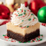 Delight in the festive flavors of Eggnog Cheesecake Brownies, combining rich, fudgy brownies with a creamy eggnog cheesecake layer topped with a swirl of eggnog whipped cream. Perfect for holiday gatherings, this decadent dessert blends the classic warmth of nutmeg and rum extract for an irresistible seasonal treat.