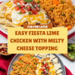 Keywords: Fiesta Lime Chicken, baked chicken, Mexican chicken recipe, lime chicken, taco seasoning chicken, creamy chicken topping