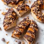 Delight in these Frozen Banana Snickers, a simple and delicious treat combining ripe bananas, creamy peanut butter, crunchy chopped peanuts, and rich dark chocolate, all frozen to create a refreshing and satisfying snack perfect for any time of the day.