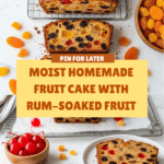 Keywords: fruit cake, holiday cake, dried fruit cake, rum soaked cake, traditional dessert, moist cake, loaf cake