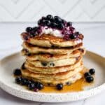 - Serve: Plate the cottage cheese pancakes and serve topped with fresh blueberries, a dollop of yogurt, and a drizzle of maple syrup. Enjoy warm.