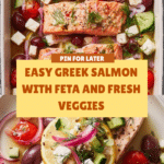 This Greek Salmon recipe combines tender, flaky fish with a vibrant, tangy feta and vegetable topping. It’s a simple, flavorful dish that brings the fresh tastes of the Mediterranean to your dinner table in under 30 minutes.