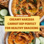 This Harissa Carrot Dip is a vibrant and flavorful spread made from roasted carrots, lentils, almonds, and a spicy harissa paste blend. Perfect as a healthy appetizer or snack, it combines smoky and spicy notes with creamy texture, making it ideal for serving alongside pita chips, veggies, or crackers.